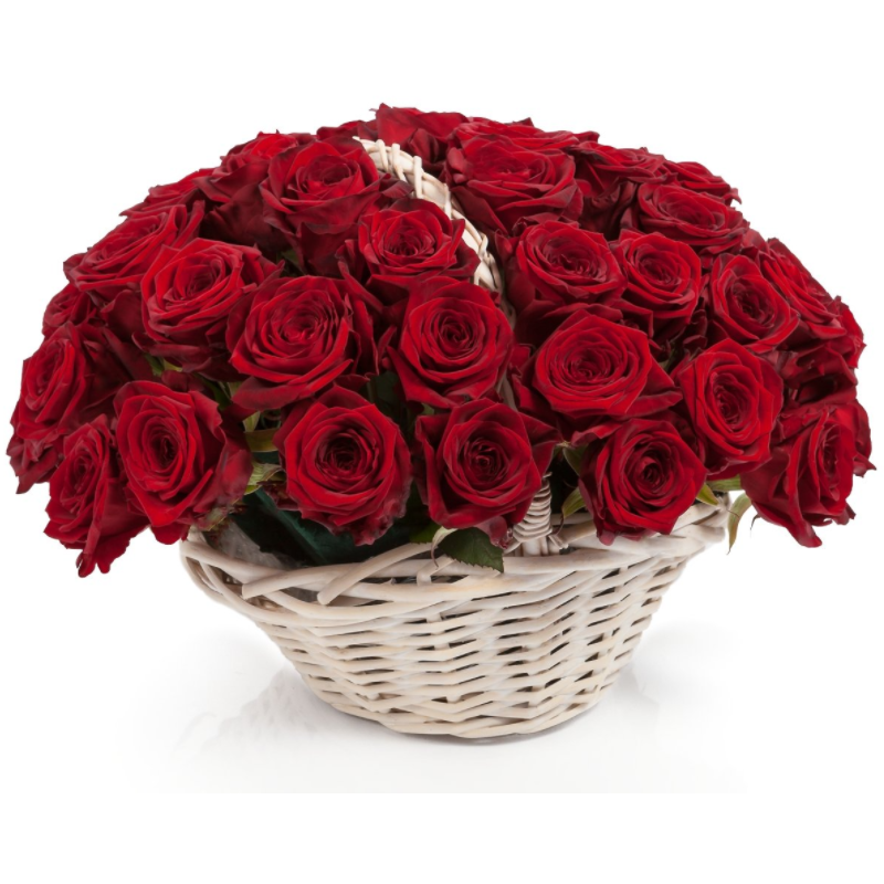 Букет состоит из 51 красная роза, корзина.